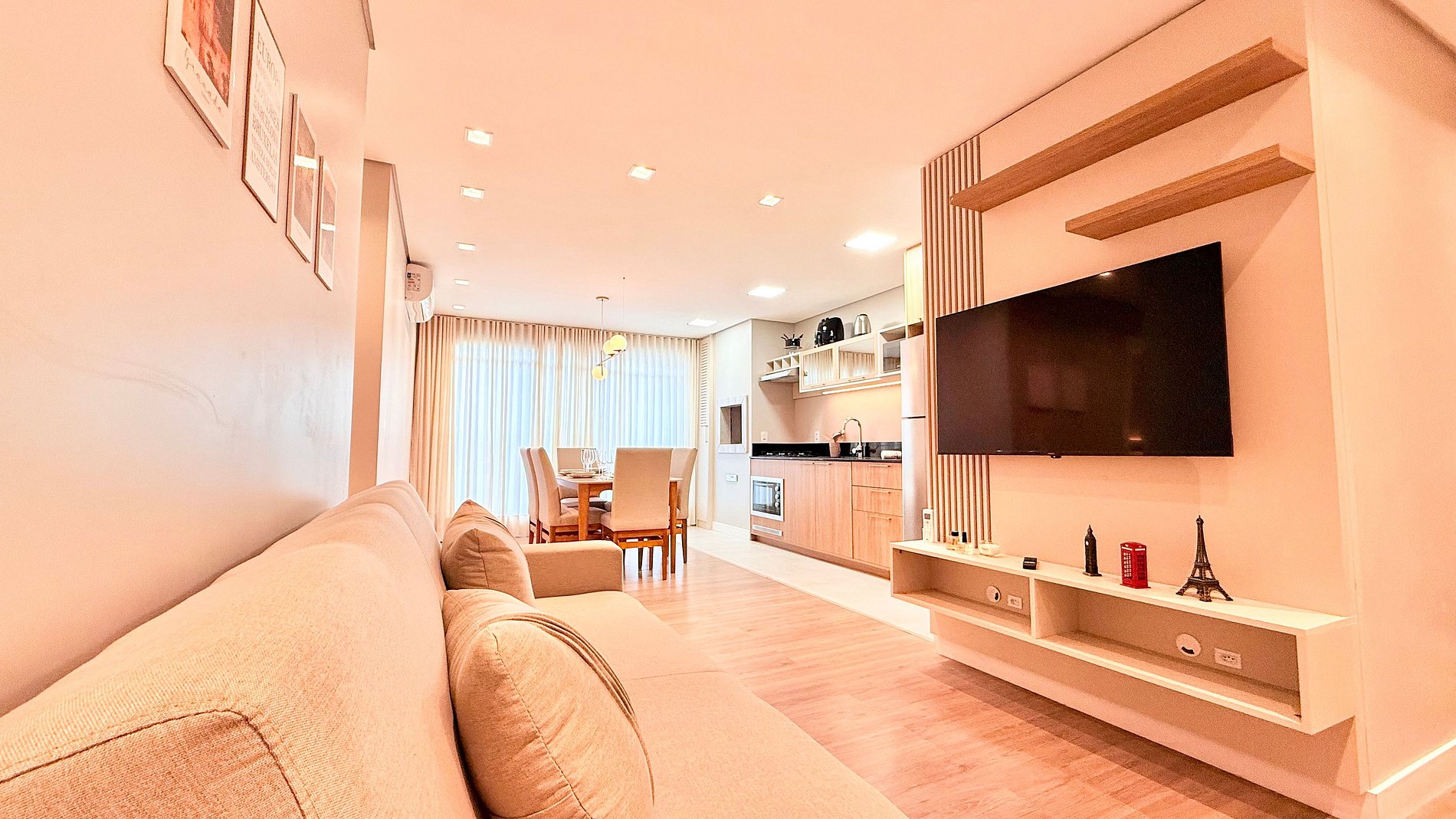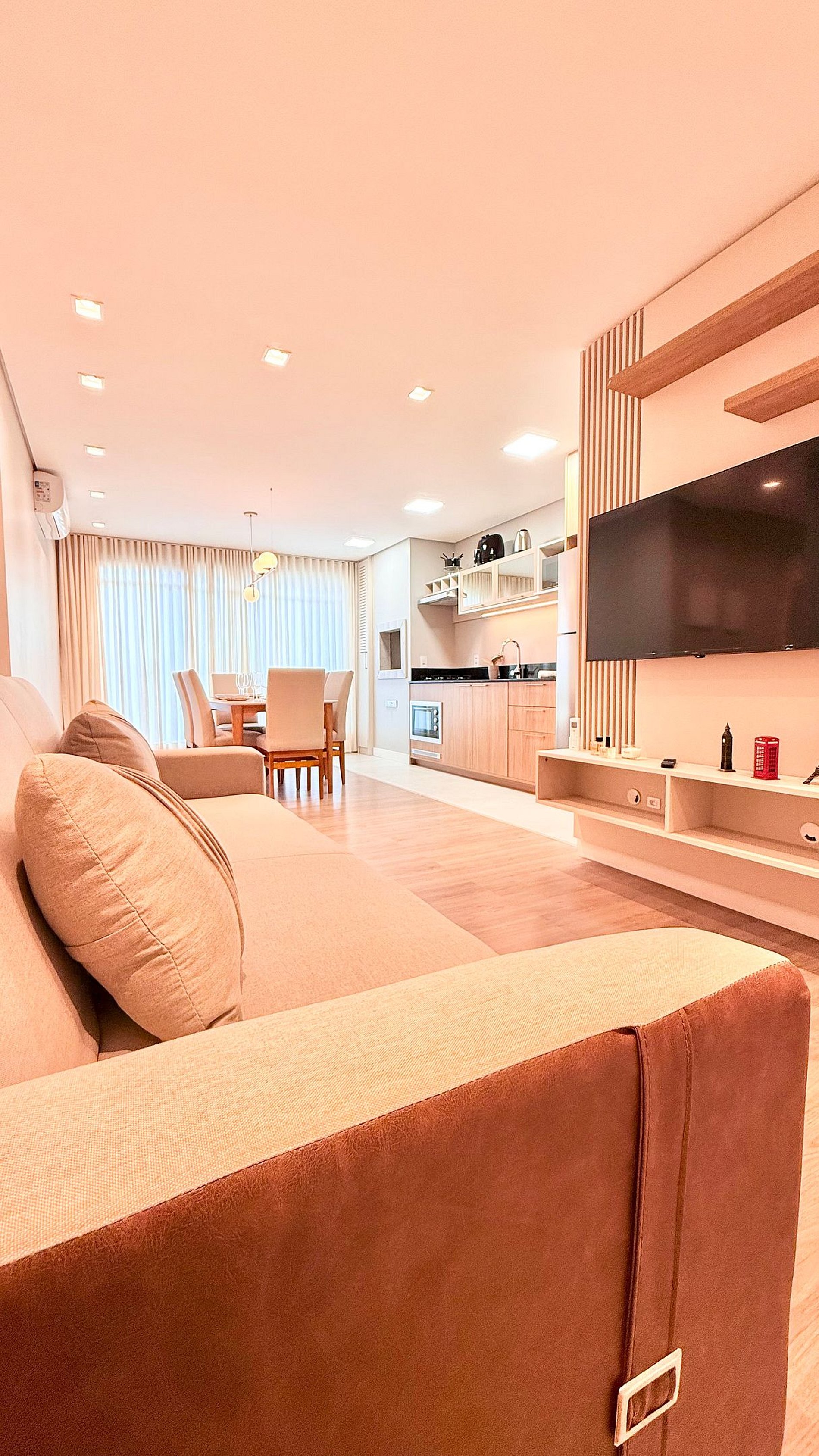 Aproveite a essência de Gramado em um apartamento novo, aconchegante e bem planejado. A suíte com cama queen garante conforto, enquanto o segundo quarto oferece duas camas de solteiro ideais para famílias. A sala conta com sofá-cama e ar-condicionado em todos os ambientes. A churrasqueira integrada e a cozinha equipada tornam sua estadia prática e agradável. Em localização privilegiada, a apenas 1 km da Rua Coberta, o espaço une comodidade e tranquilidade.