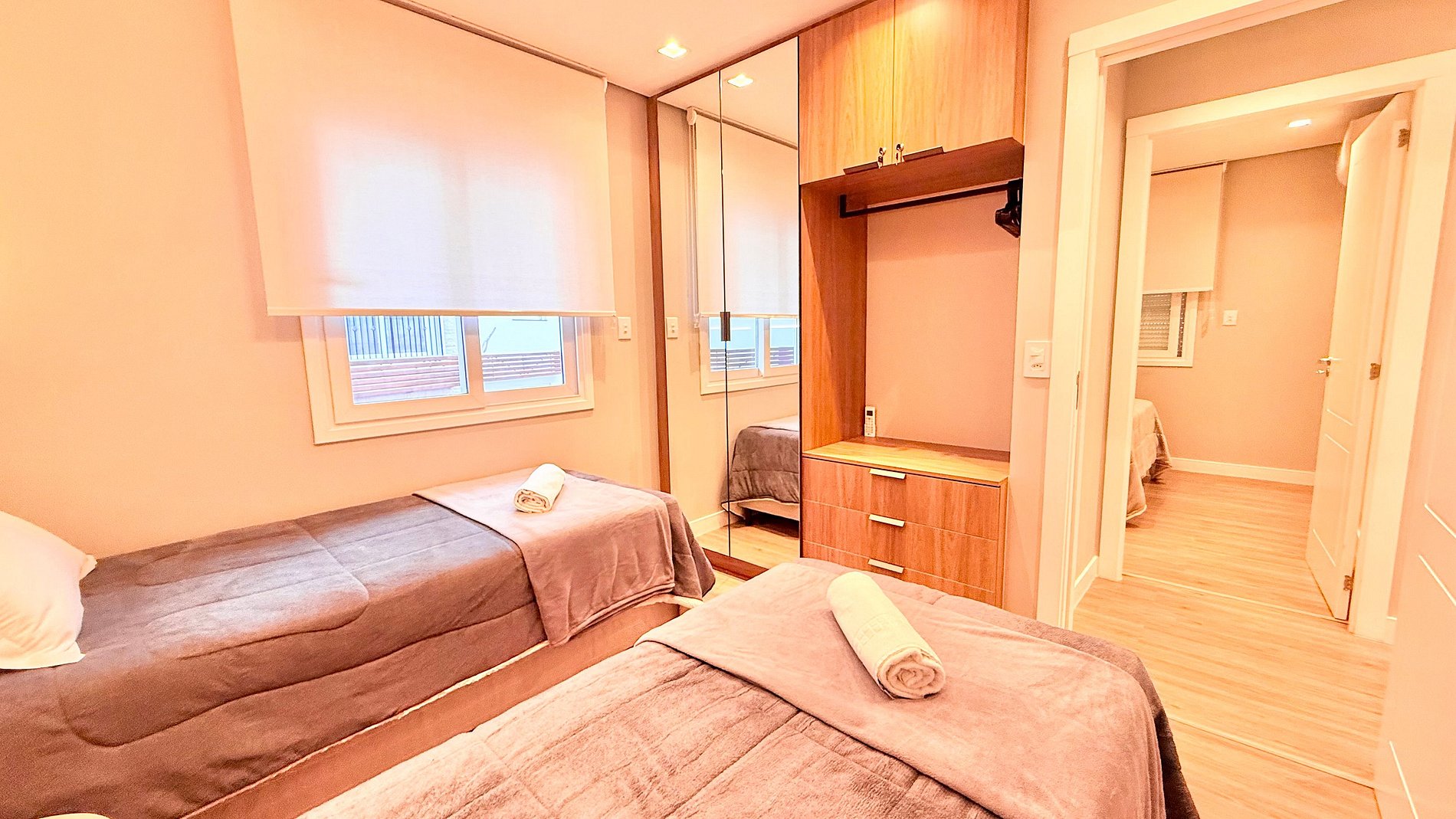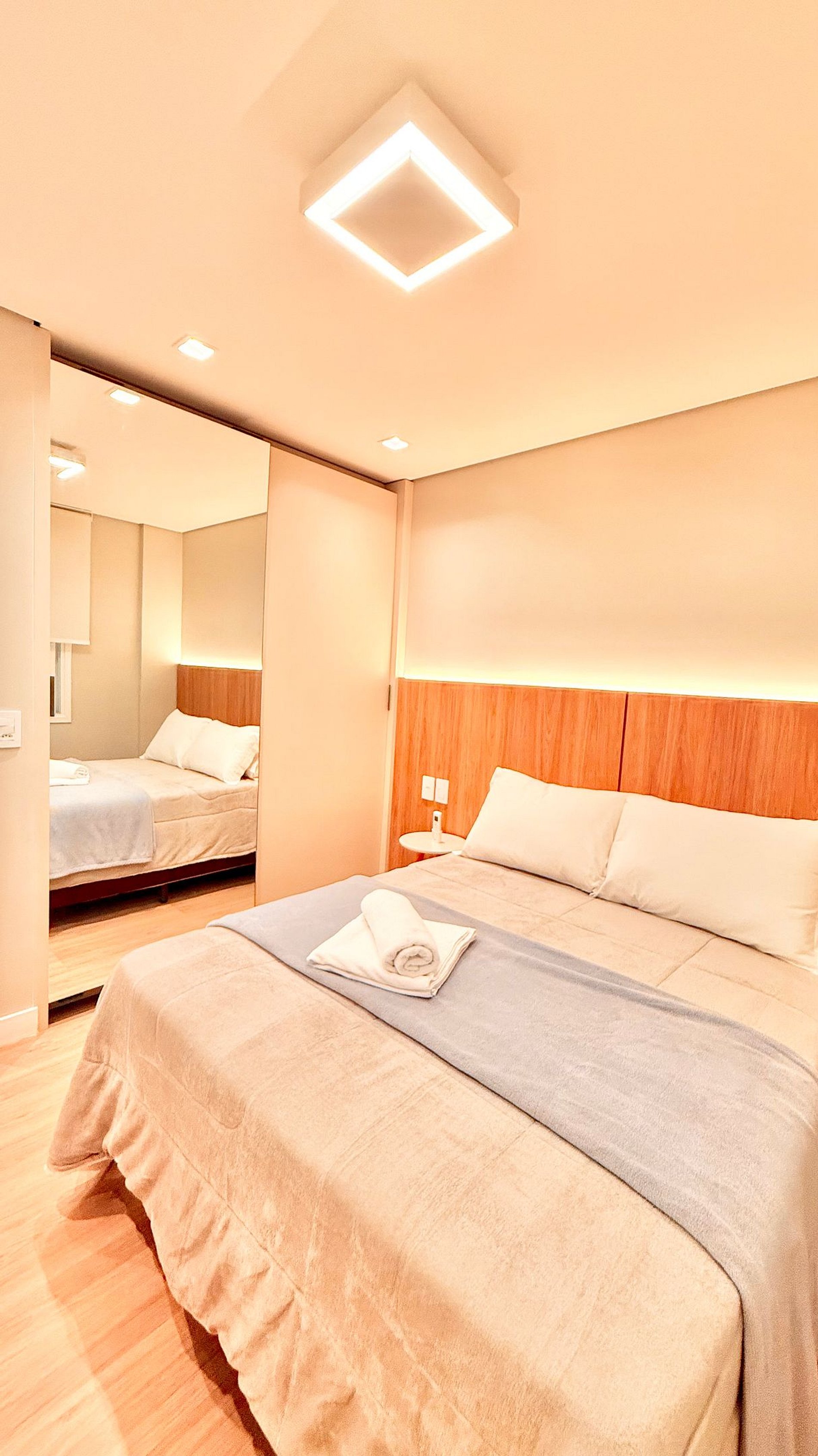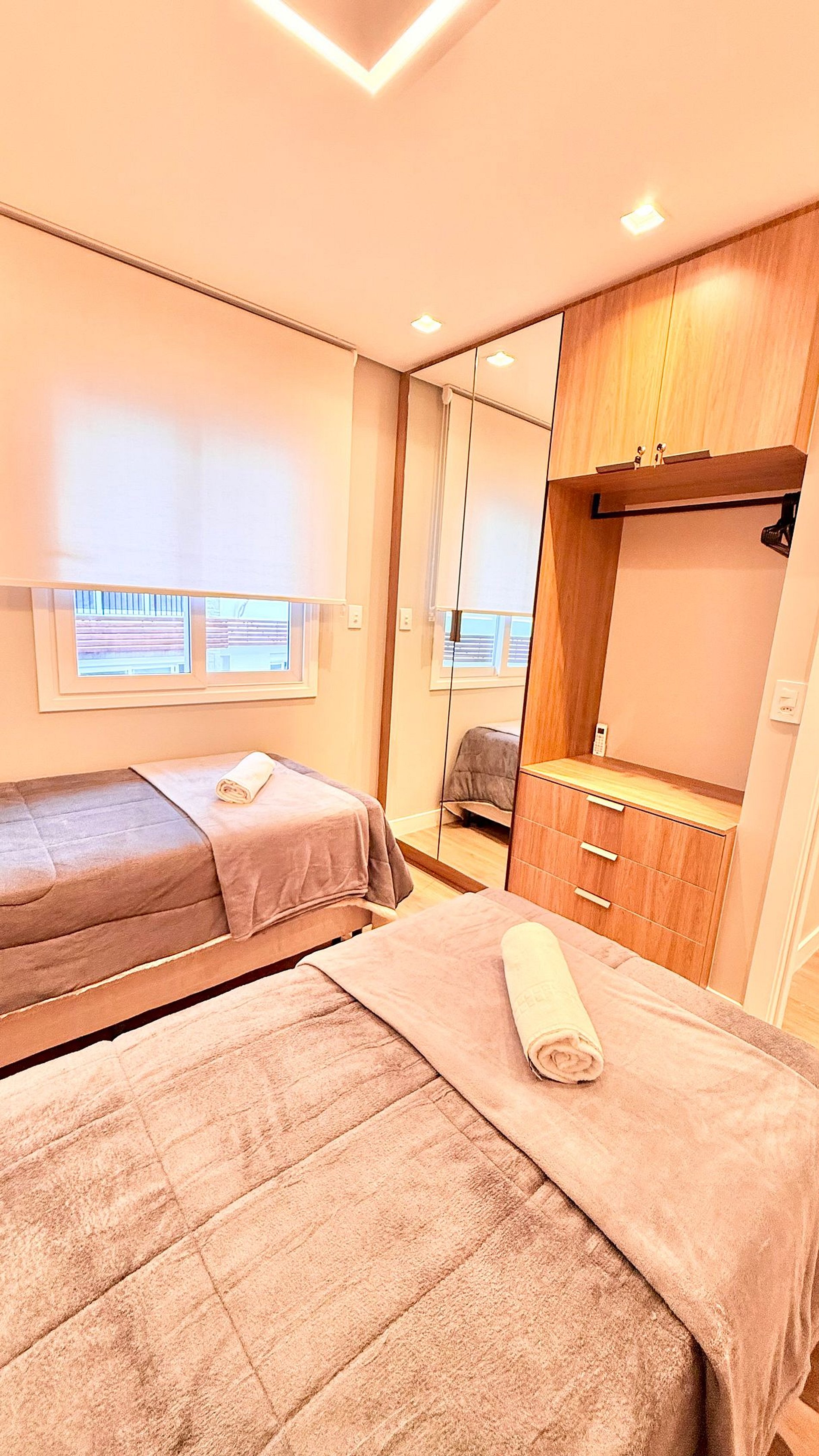 Apartamento novo, aconchegante e bem equipado em Gramado. Possui dois quartos, sendo uma suíte com cama queen e um dormitório com duas camas de solteiro. A sala conta com sofá-cama de solteiro, ar-condicionado em todos os ambientes e churrasqueira. Perfeito para famílias ou casais que buscam conforto e praticidade. Localizado a apenas 1 km da Rua Coberta, em uma área tranquila e de fácil acesso aos principais pontos da cidade.