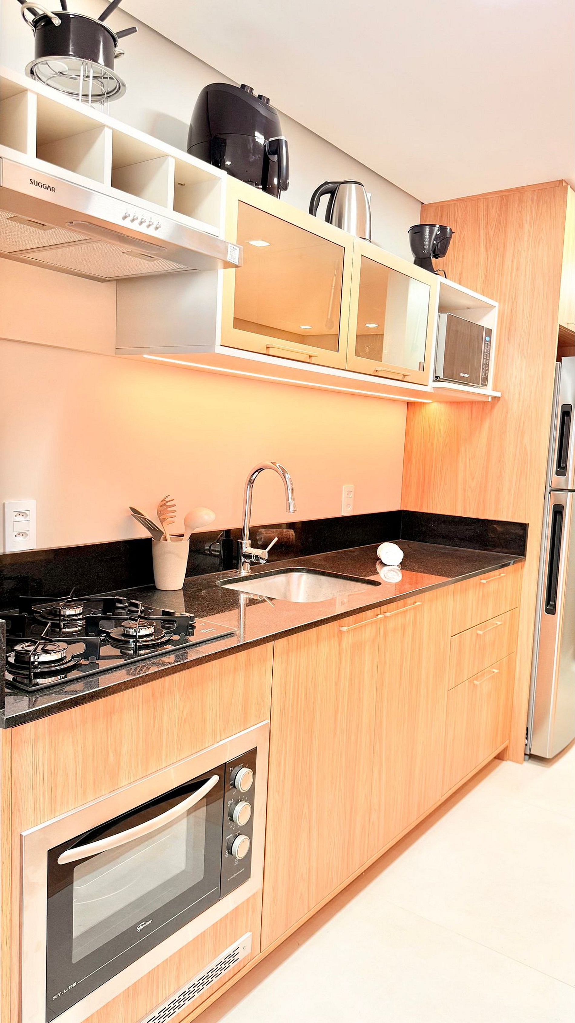 • A cozinha está equipada com utensílios básicos para preparar refeições.