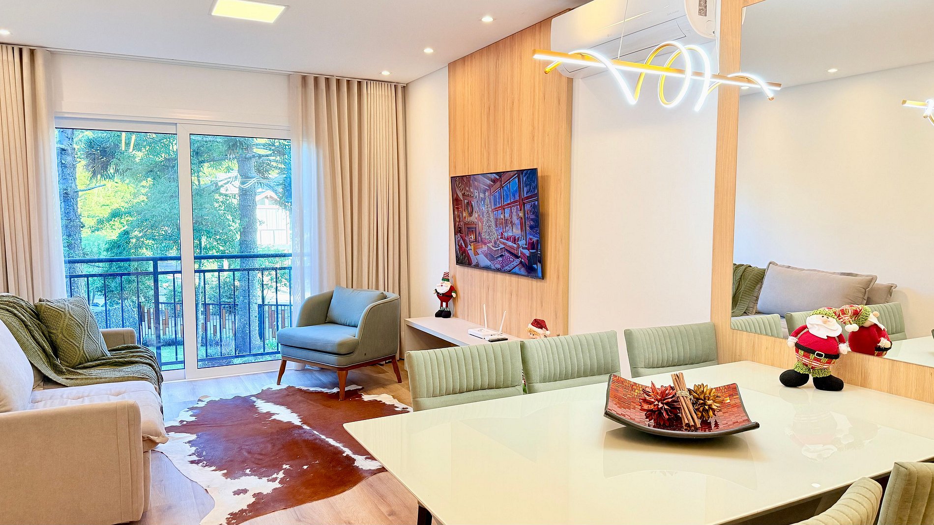 Apartamento novo, lindo e muito bem decorado, localizado a apenas 600 metros da Catedral de Pedra, em Canela. Possui duas suítes com camas queen e camas auxiliares, sala de estar com sofá-cama, lavabo e ar-condicionado em todos os ambientes. Vista encantadora para o jardim, ideal para famílias e grupos que buscam conforto, praticidade e uma estadia especial na Serra Gaúcha.