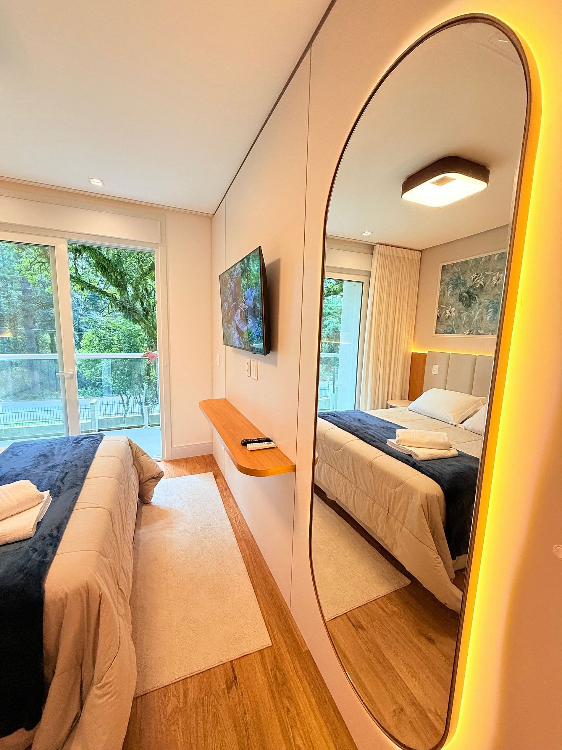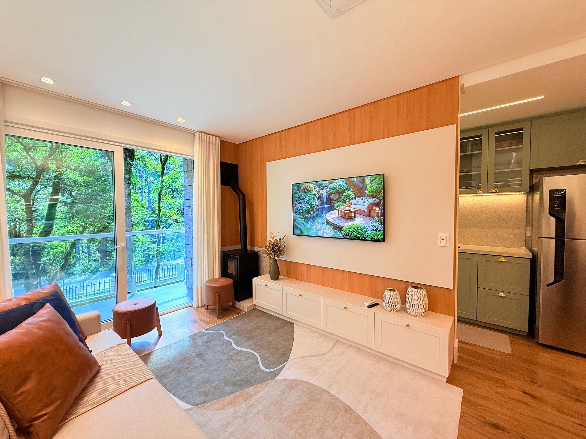 Este apartamento se destaca por oferecer o melhor dos dois mundos: natureza, tranquilidade e a praticidade de estar entre Gramado e Canela. Localizado em um dos condomínios mais completos da região, você estará a apenas 4 km da famosa Rua Coberta, perto de todas as atrações, mas longe o suficiente para desfrutar de silêncio absoluto, ar puro e paisagens encantadoras.
