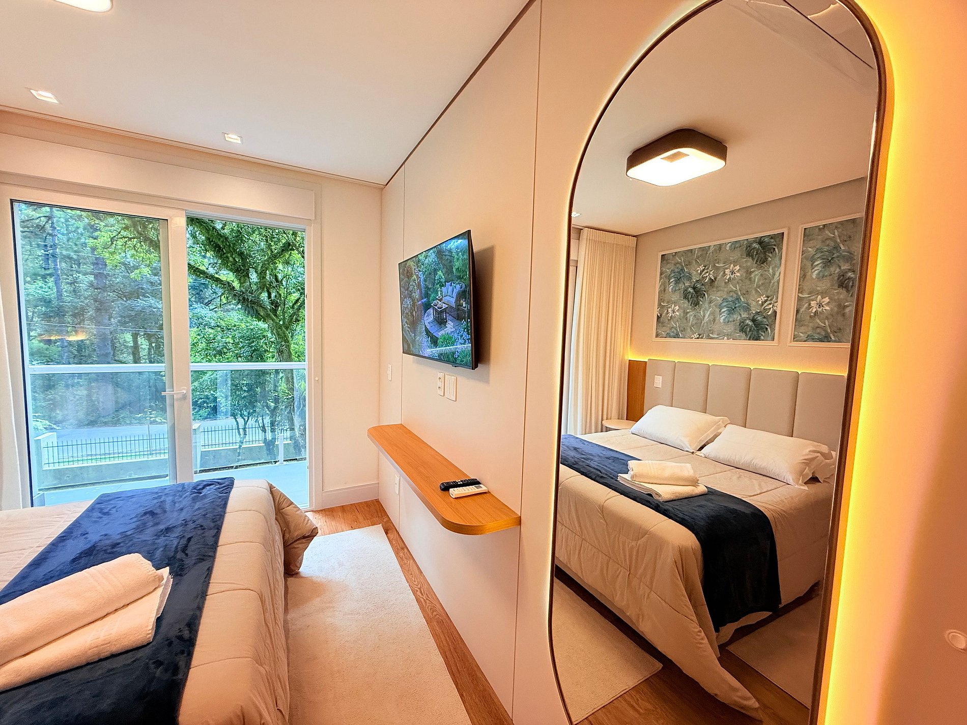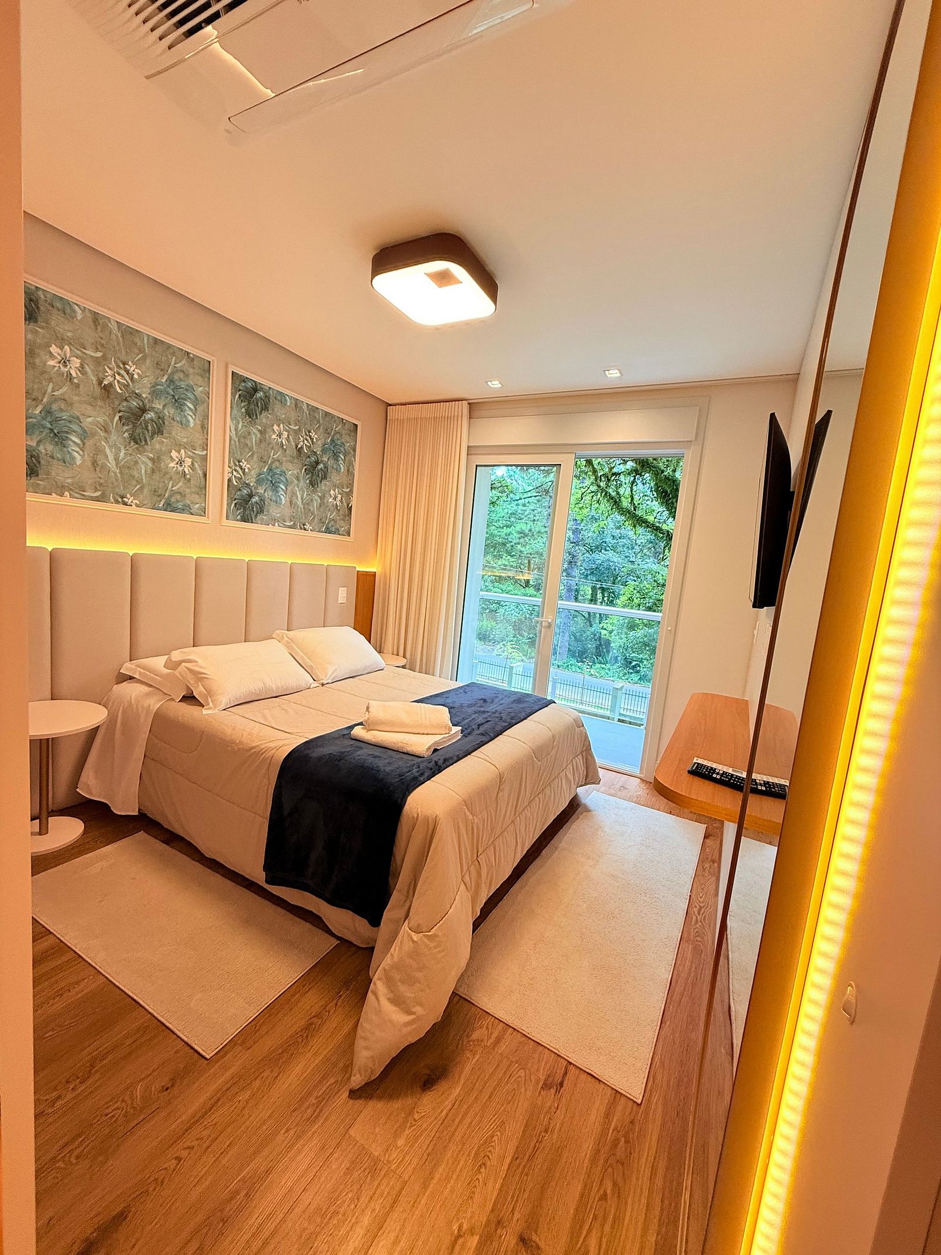 Descubra um refúgio acolhedor em meio à natureza! Nosso apartamento oferece o equilíbrio ideal entre conforto, tranquilidade e estrutura completa de um verdadeiro resort. Suíte ampla, perfeitas para famílias, casais que desejam descansar com privacidade e bem-estar.