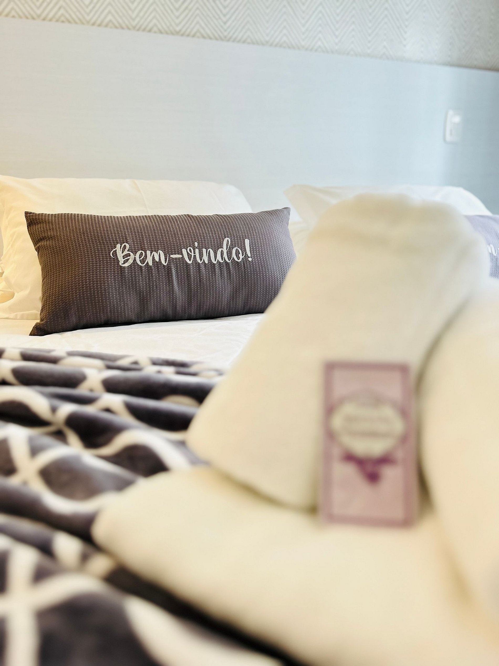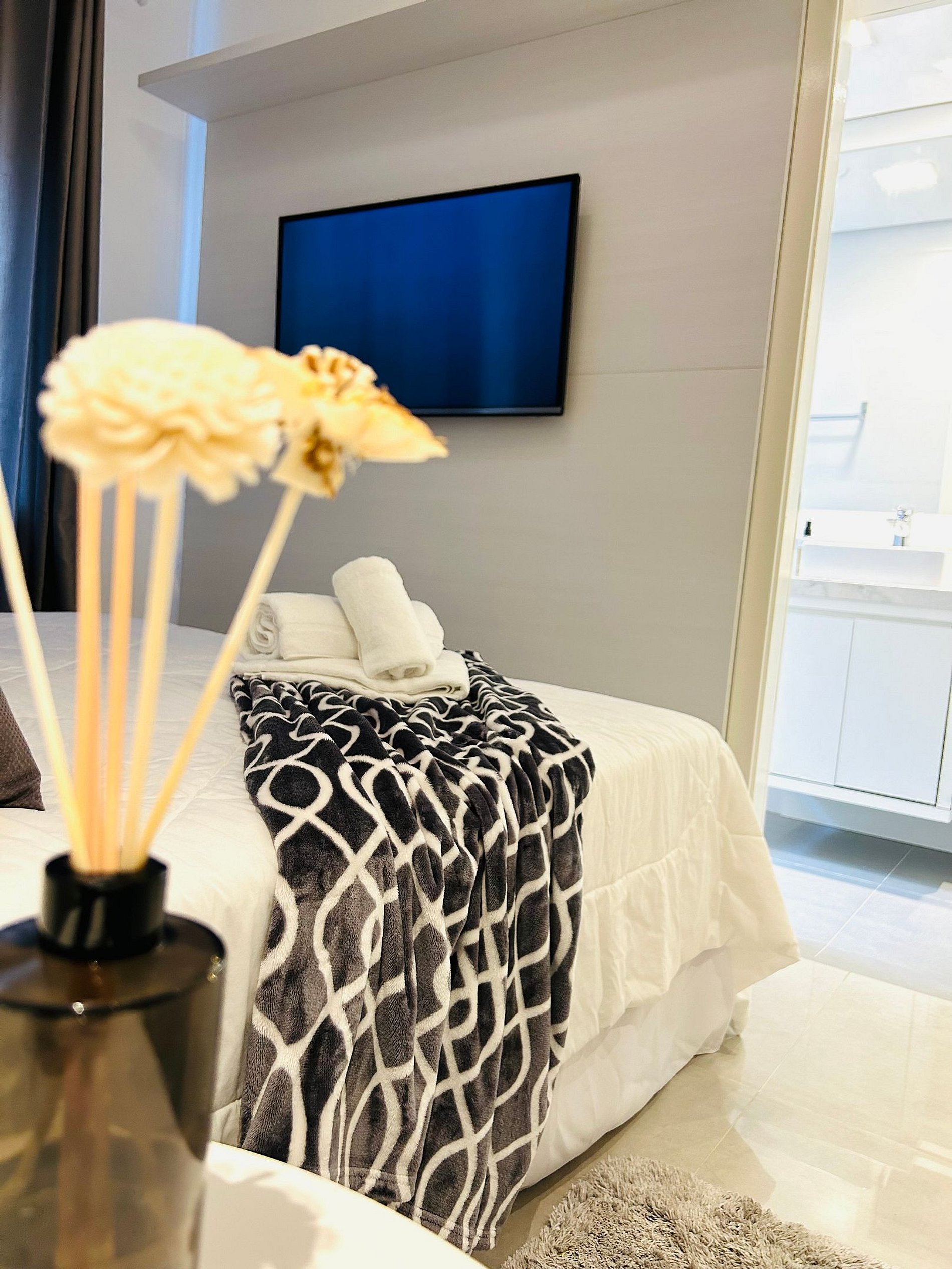 Esse apartamento é espaçoso e acomoda confortavelmente até seis pessoas. São duas suítes, ambas com cama de casal tamanho queen sendo que uma delas pode separar e montar duas de solteiro além de uma das suítes contar com uma cama auxiliar. Possui ainda um sofá cama confortável que acomoda mais duas pessoas. O apartamento está totalmente equipado com itens essenciais como louças, roupas de cama e banho, máquina lava e seca, microondas, forno, cafeteira, sanduicheira, secador de cabelo e etc… Aqui, você não precisa se preocupar em carregar todos esses itens extras, pois nós pensamos em tudo! Possui ainda ar-condicionado quente e frio em todos os cômodos principais.