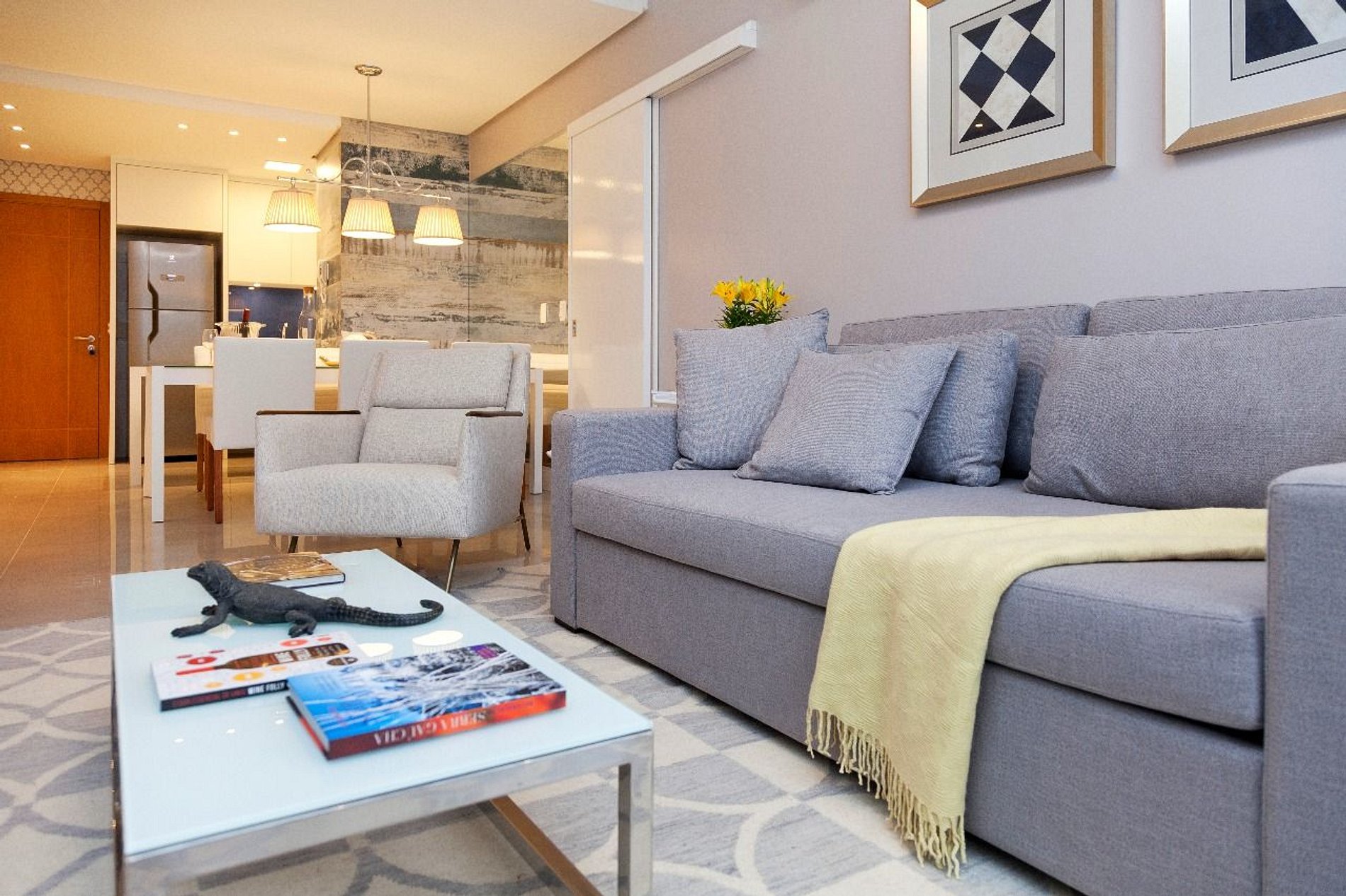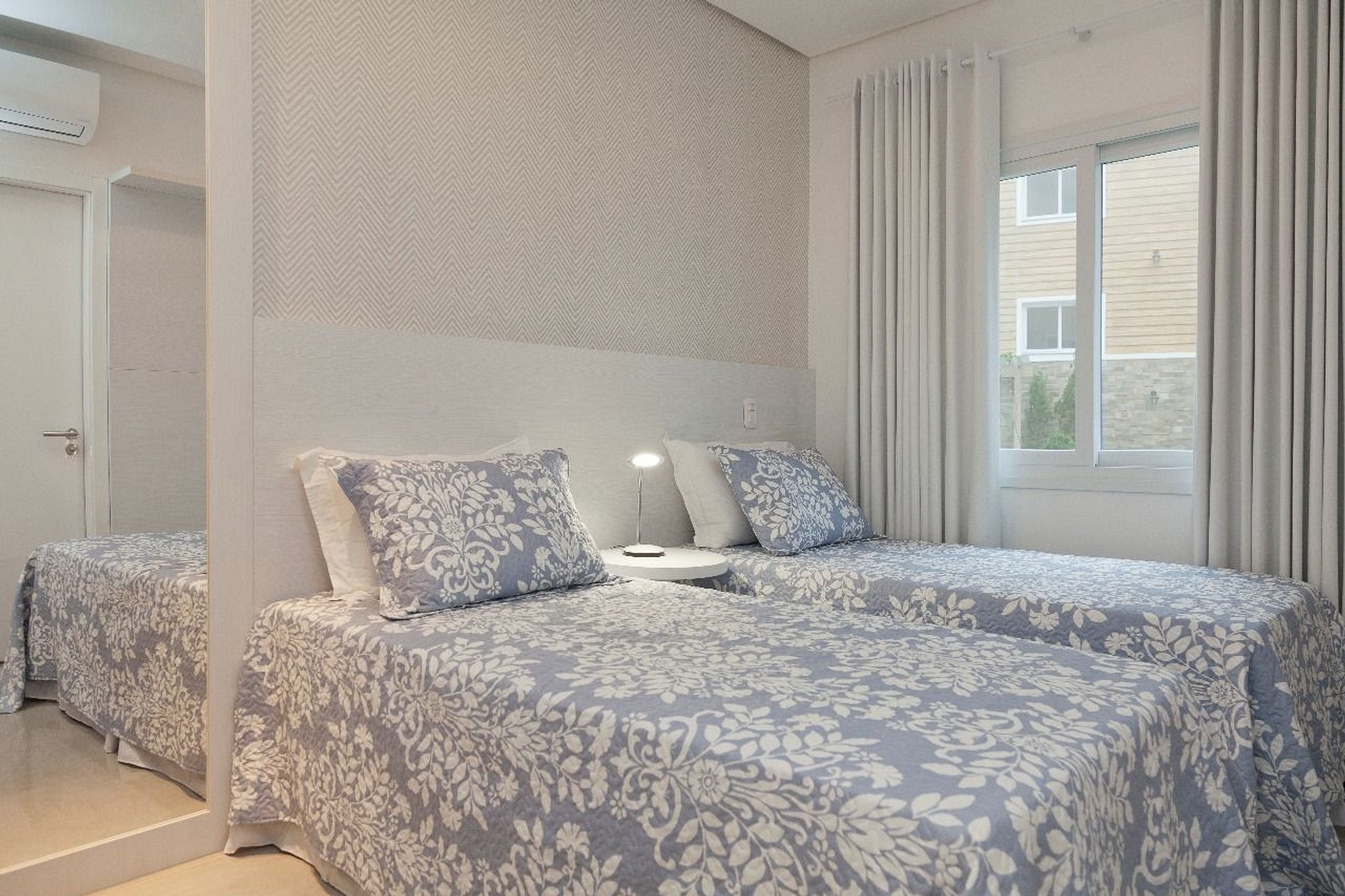 Esse apartamento é espaçoso e acomoda confortavelmente até seis pessoas. São duas suítes, ambas com cama de casal tamanho queen sendo que uma delas pode separar e montar duas de solteiro além de uma das suítes contar com uma cama auxiliar. Possui ainda um sofá cama confortável que acomoda mais duas pessoas. O apartamento está totalmente equipado com itens essenciais como louças, roupas de cama e banho, máquina lava e seca, microondas, forno, cafeteira, sanduicheira, secador de cabelo e etc… Aqui, você não precisa se preocupar em carregar todos esses itens extras, pois nós pensamos em tudo! Possui ainda ar-condicionado quente e frio em todos os cômodos principais.