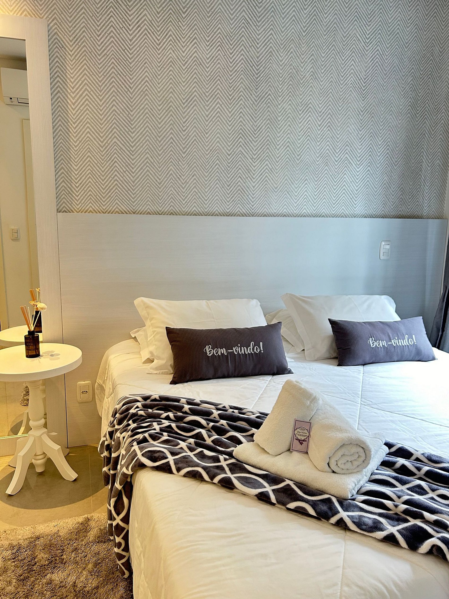Esse apartamento é espaçoso e acomoda confortavelmente até sete pessoas. São duas suítes, uma com cama de casal tamanho queen e a segunda suíte com cama de casal tamanho padrão. Além disso possui um sofá cama confortável que acomoda mais duas pessoas. O apartamento está totalmente equipado com itens essenciais como louças, roupas de cama e banho, microondas, forno, cafeteira, sanduicheira, secador de cabelo e etc… Aqui, você não precisa se preocupar em carregar todos esses itens extras, pois nós pensamos em tudo! Possui ainda ar-condicionado quente e frio em todos os cômodos principais.