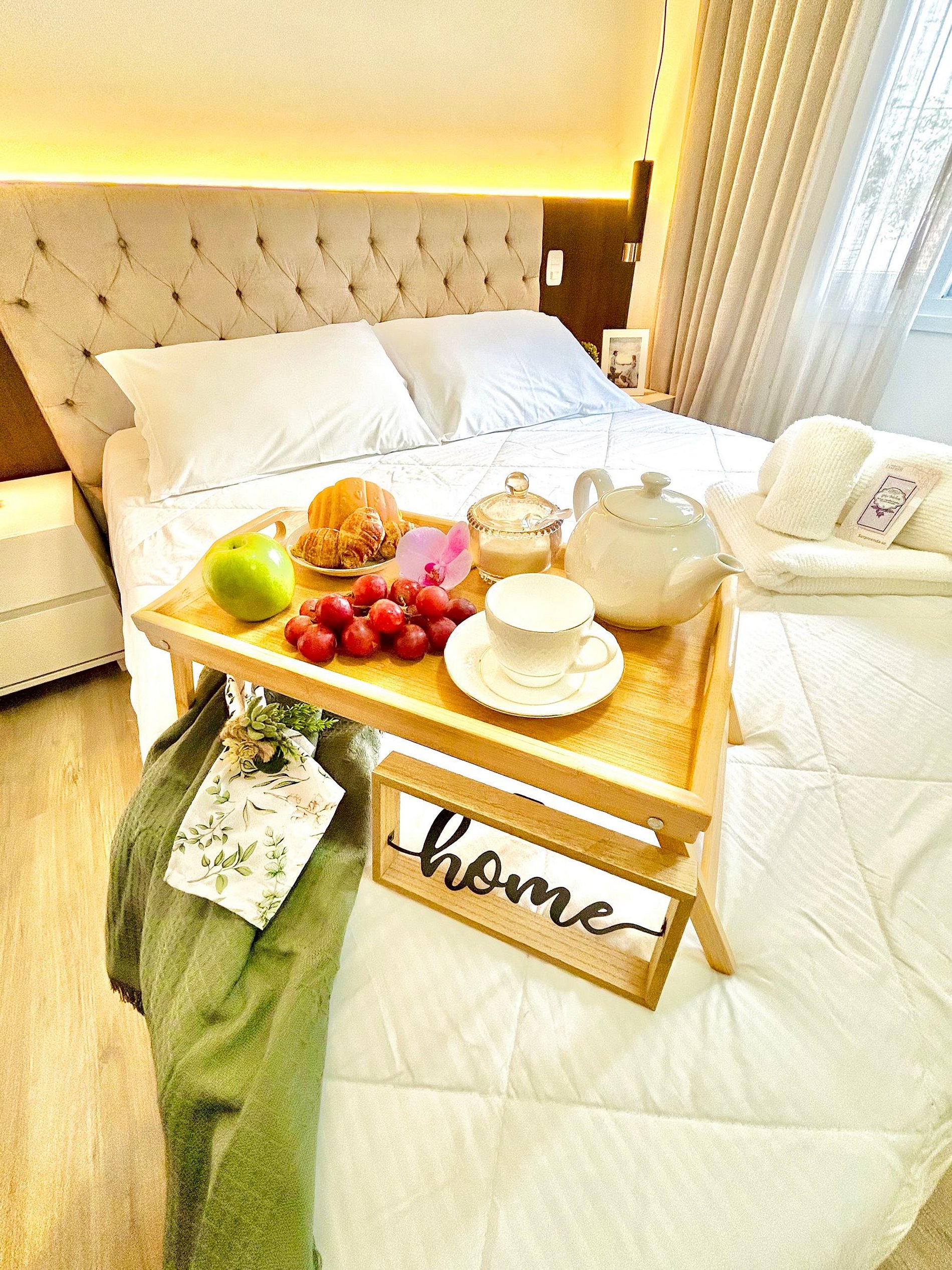 Pensando no seu conforto e descanso o apartamento possui uma suíte equipada com roupas de cama 300 fios da Buddemeyer, toalhas de banho tamanho gigante, toalhas de rosto e piso também da marca Buddemeyer, além de ar-condicionado Split quente e frio, espelho e guarda roupas para acomodar todos os seus pertences. Você também vai encontrar um ferro de passar roupa e um secador de cabelos. A Sala de estar/jantar é equipada com TV Smart HD, ar-condicionado quente e frio, um sofá-cama tamanho casal confortável com roupas de cama disponíveis. Na cozinha você encontra cafeteira, bule térmico com coador e filtros disponíveis. Você também terá a disposição uma chaleira elétrica, sanduicheira/grill, microondas, taças de vinho e espumante, geladeira, fogão, louças e talheres, panelas e churrasqueira. Sacada com vista para vegetação local.