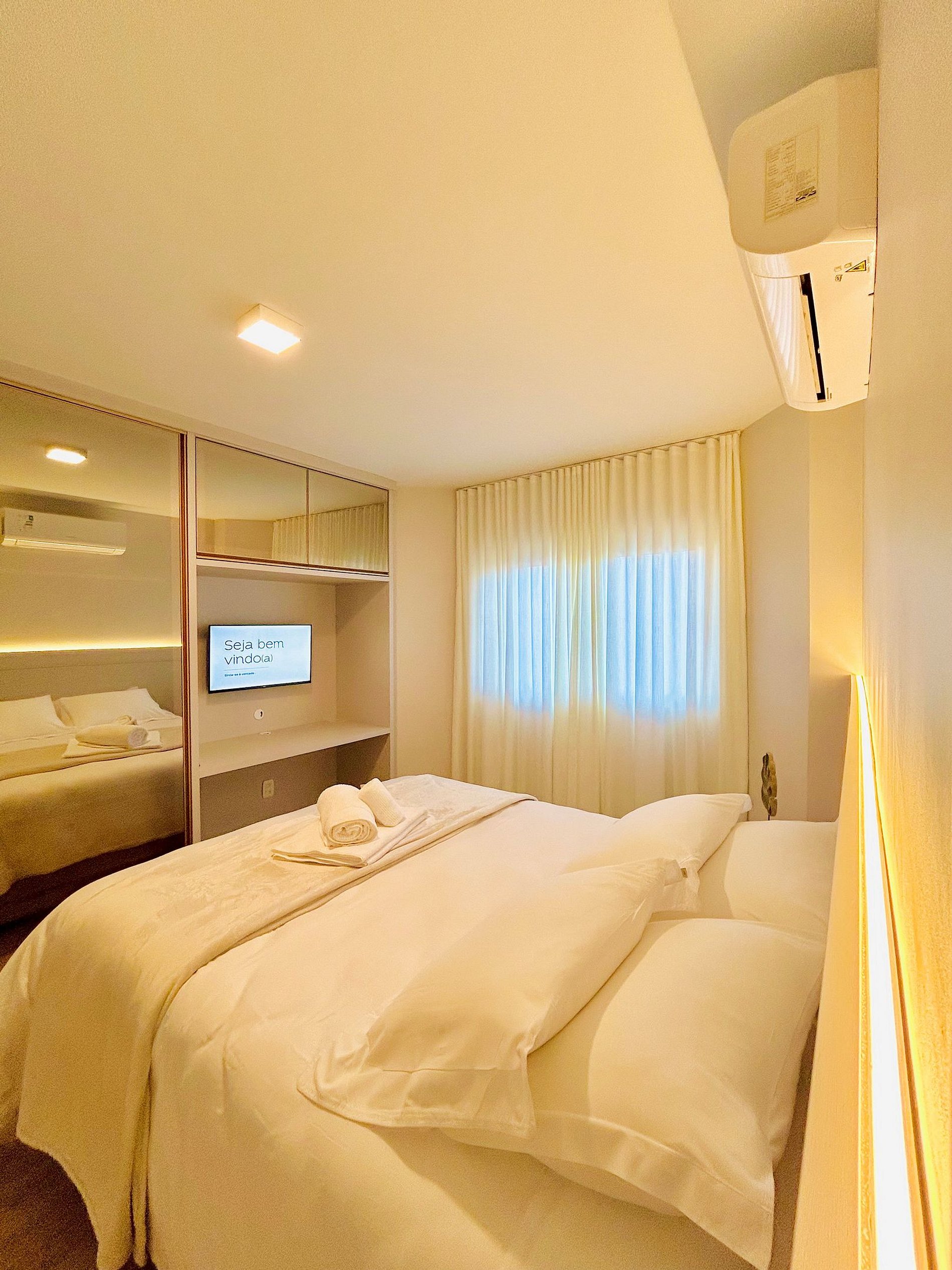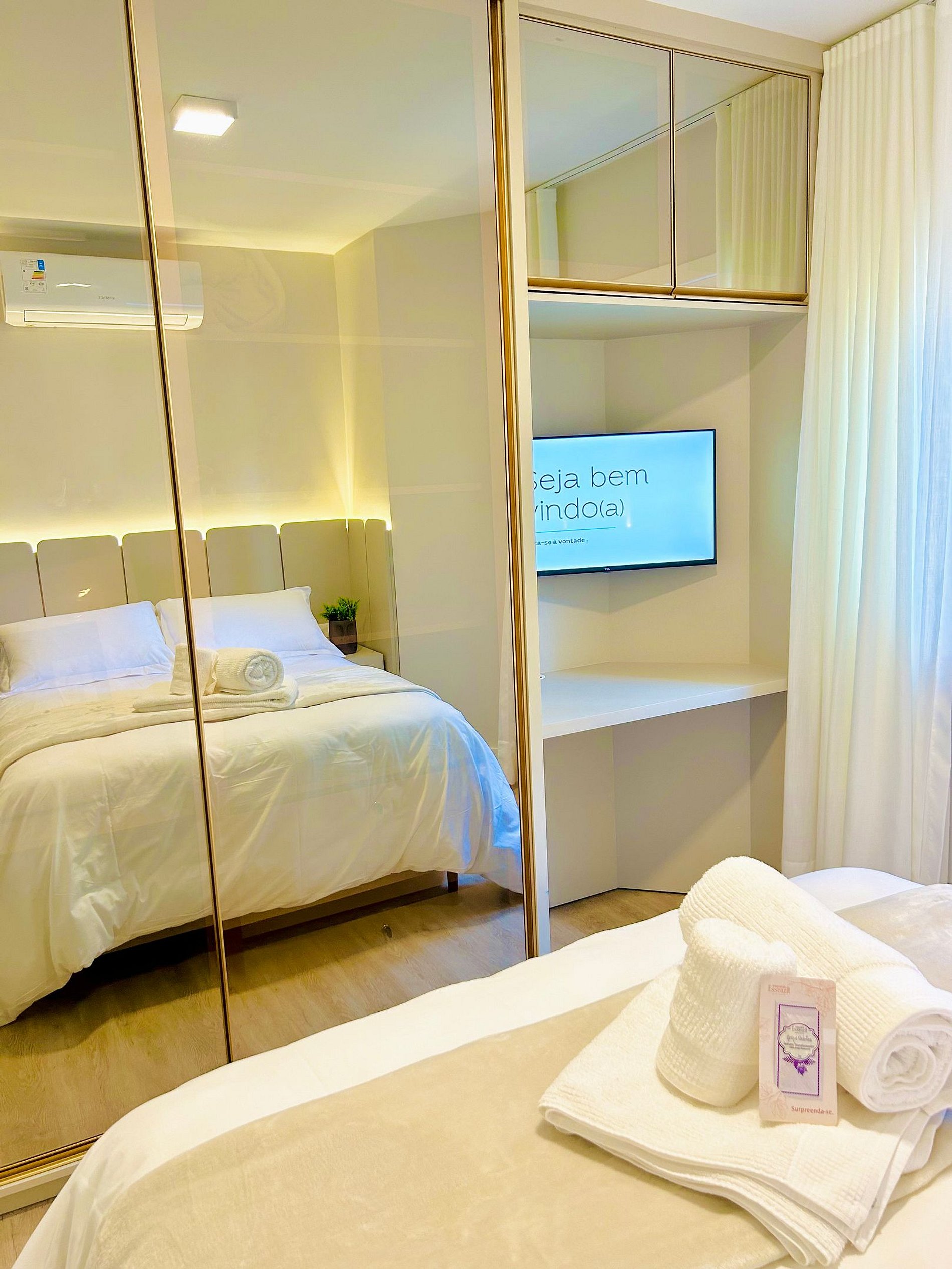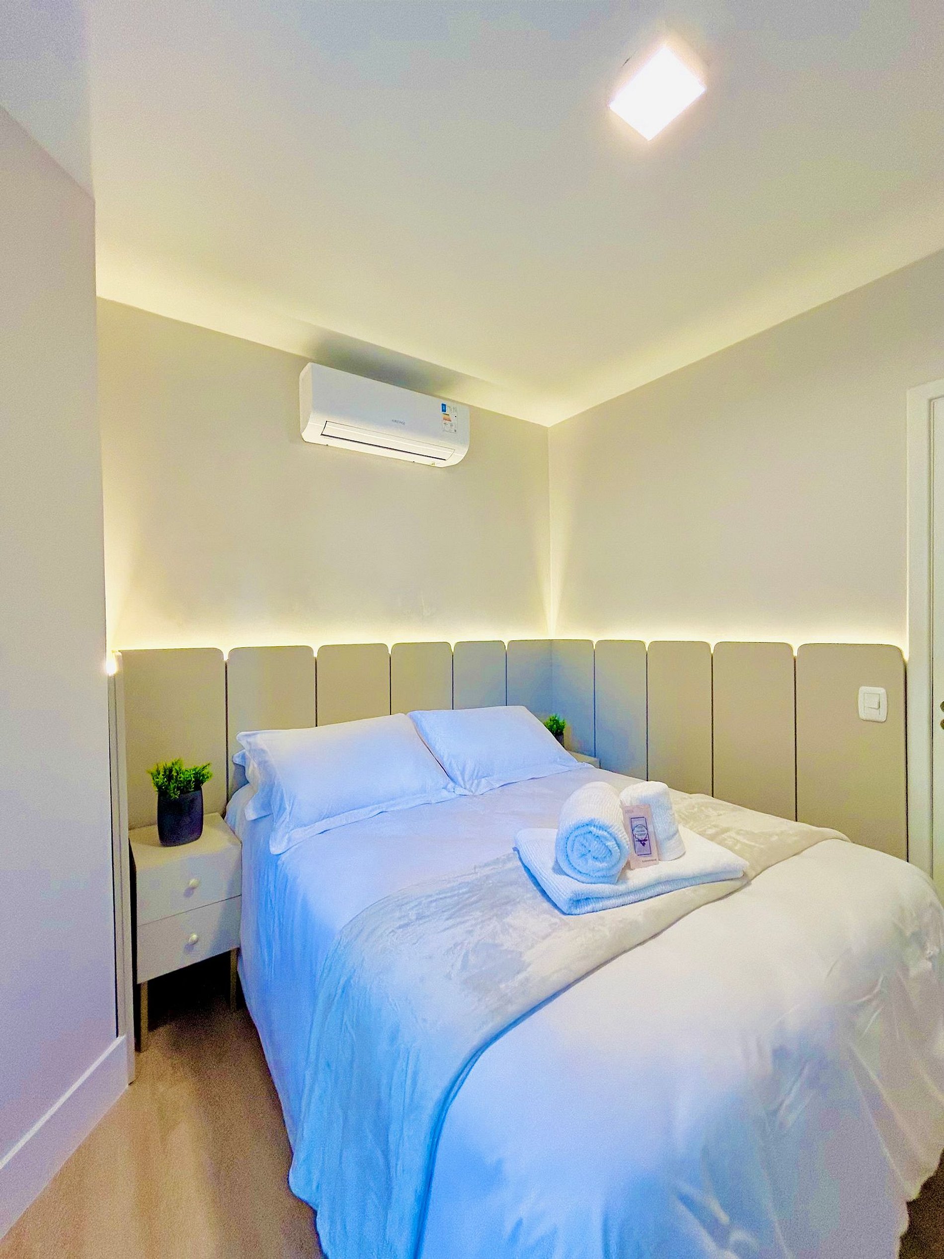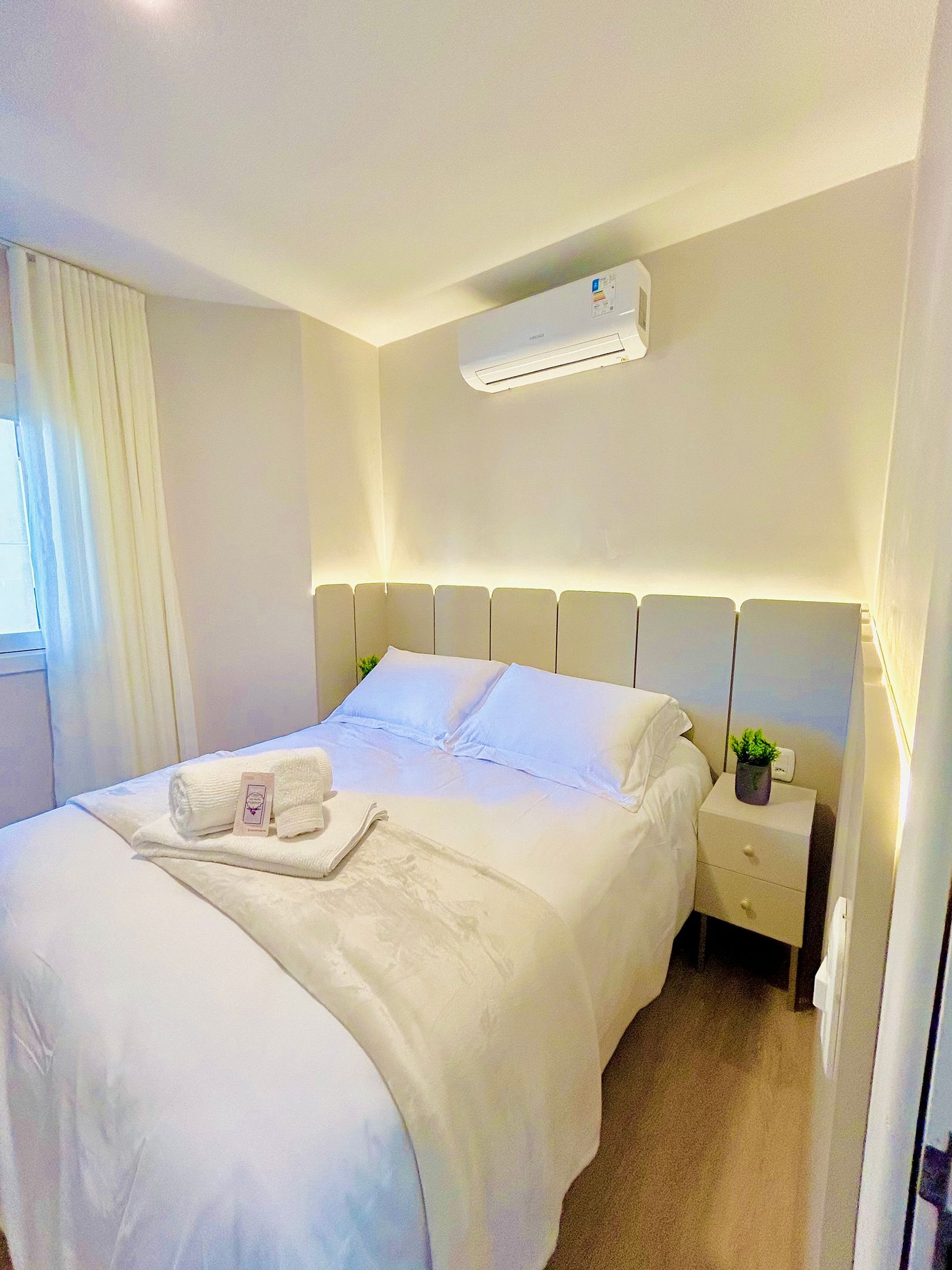 Pensando no seu conforto e descanso o apartamento possui uma suíte equipada com roupas de cama 300 fios da Buddemeyer, toalhas de banho tamanho gigante, toalhas de rosto e piso., Ar-condicionado Split quente e frio em todos os comodos e guarda roupas para acomodar todos os seus pertences. Você também vai encontrar um ferro de passar roupa e um secador de cabelos. A Sala de estar/jantar é equipada com TV Smart HD, um sofá-cama tamanho casal confortável com roupas de cama disponíveis. Na cozinha você encontra cafeteira, bule térmico com coador e filtros disponíveis. Você também terá a disposição uma chaleira elétrica, sanduicheira/grill, microondas, taças de vinho e espumante, geladeira, fogão, louças e talheres, mantimentos (Azeite, sal, pimenta, açúcar, etc...), panelas e churrasqueira e uma lareira lindíssima à lenha.