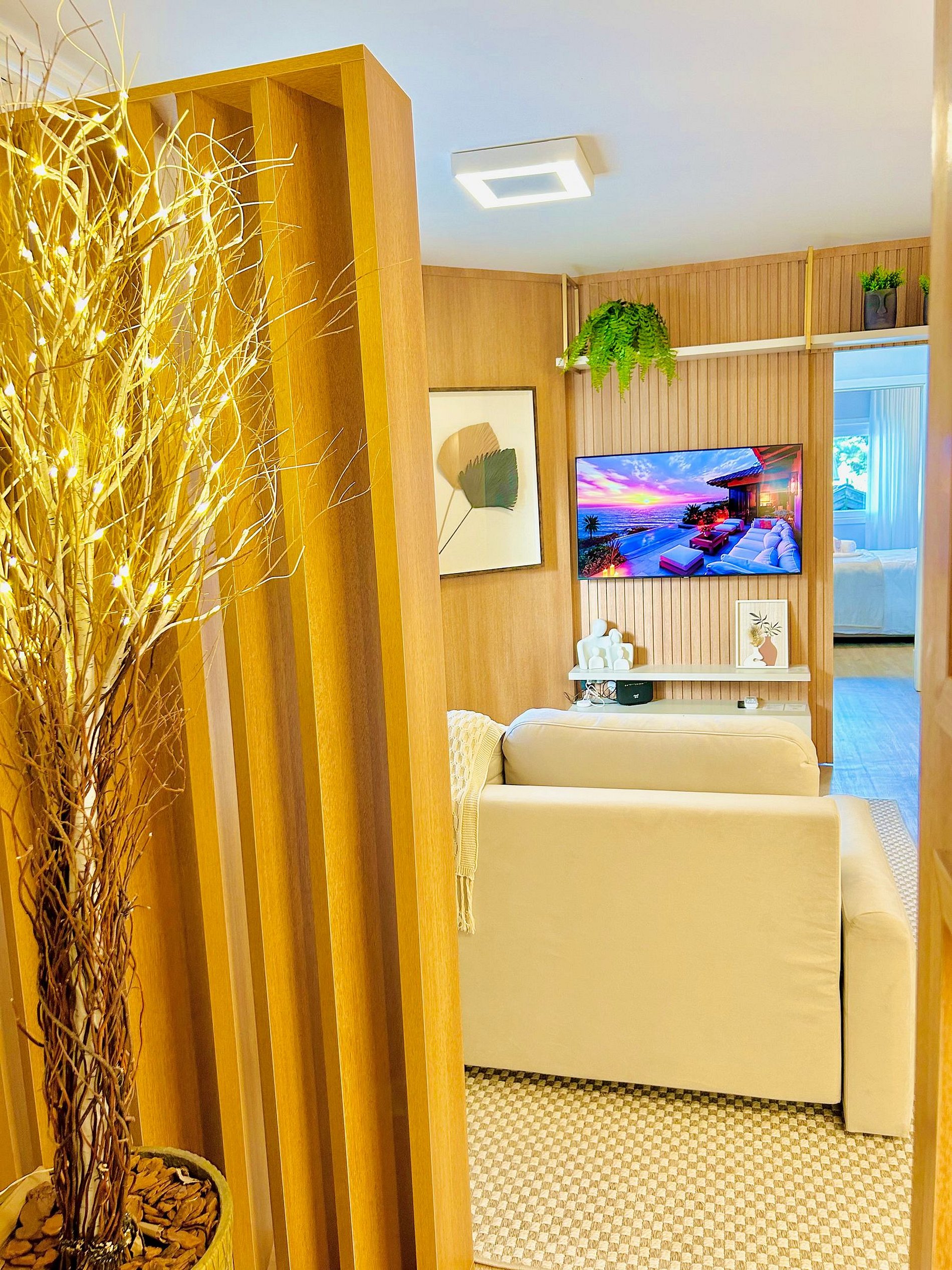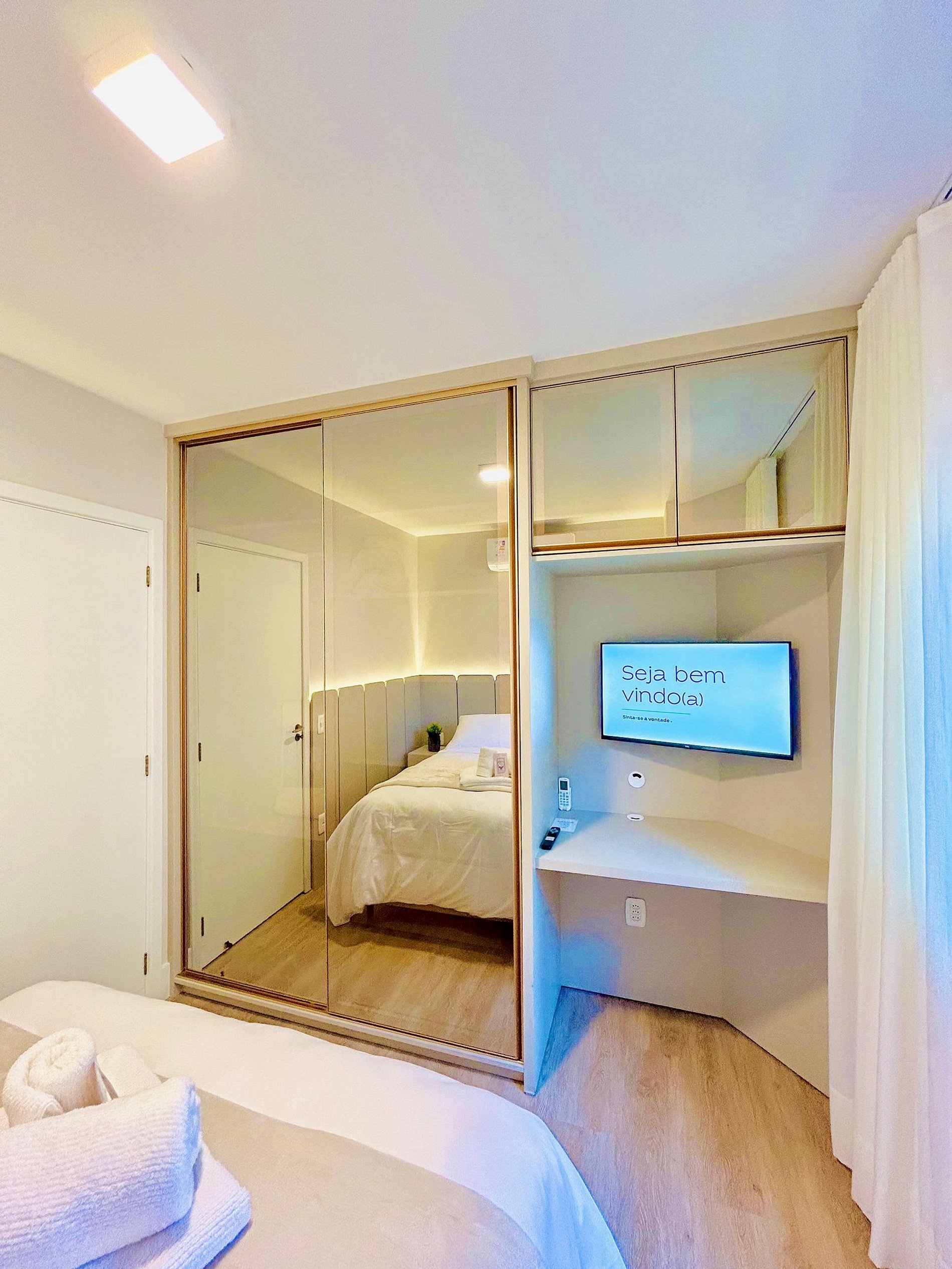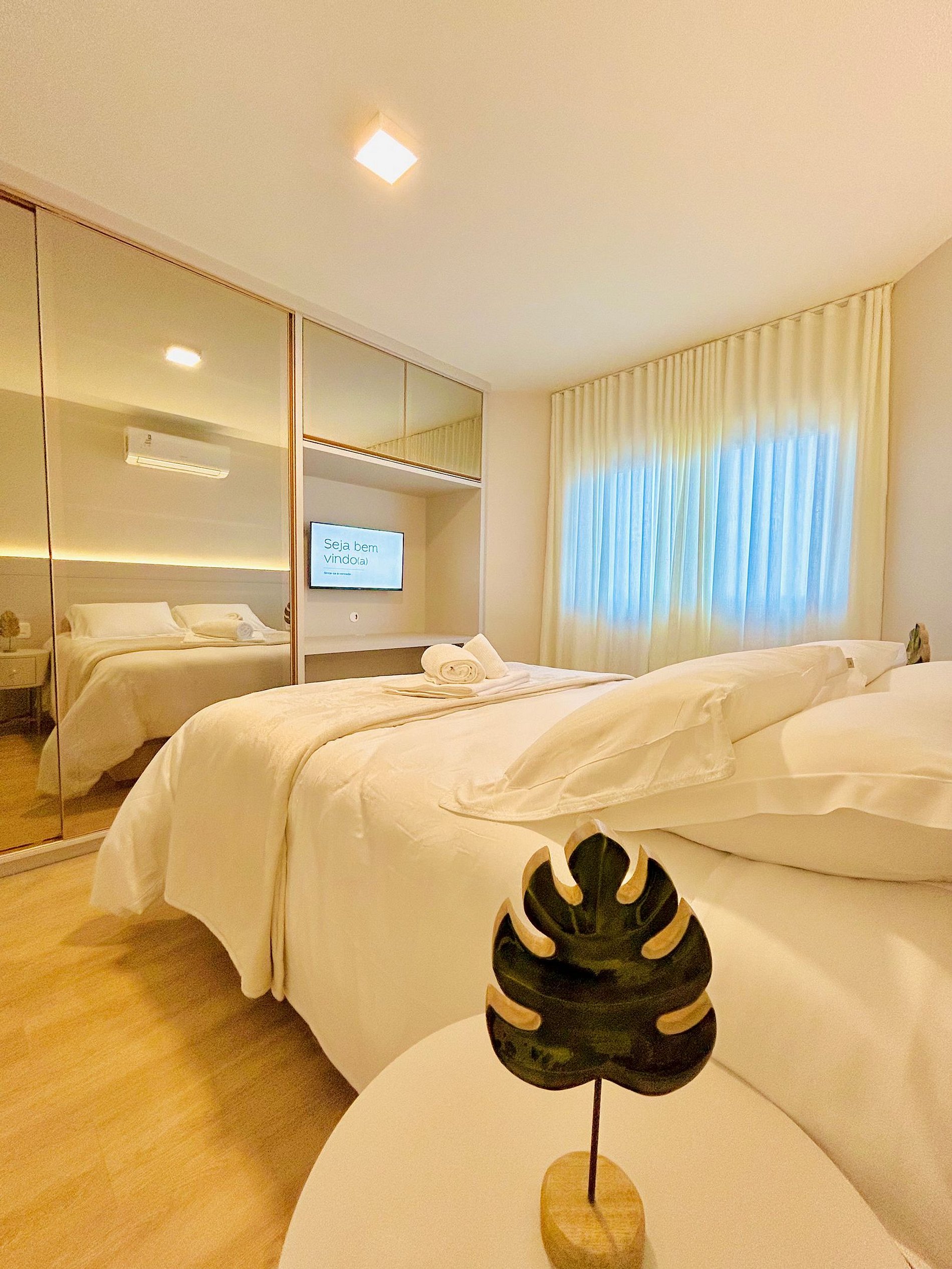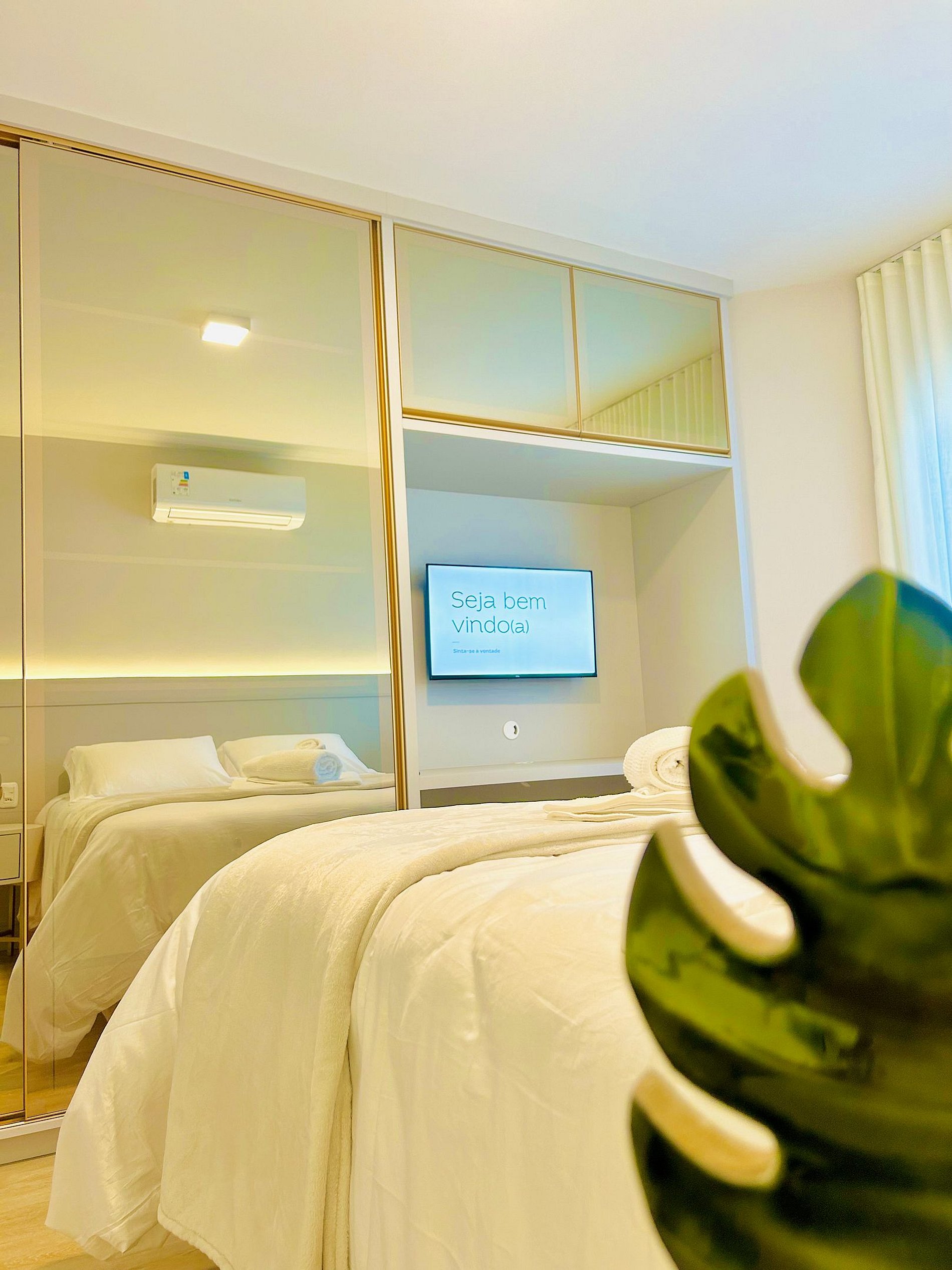 Pensando no seu conforto e descanso o apartamento possui uma suíte equipada com roupas de cama 300 fios da Buddemeyer, toalhas de banho tamanho gigante, toalhas de rosto e piso., Ar-condicionado Split quente e frio em todos os comodos e guarda roupas para acomodar todos os seus pertences. Você também vai encontrar um ferro de passar roupa e um secador de cabelos. A Sala de estar/jantar é equipada com TV Smart HD, um sofá-cama tamanho casal confortável com roupas de cama disponíveis. Na cozinha você encontra cafeteira, bule térmico com coador e filtros disponíveis. Você também terá a disposição uma chaleira elétrica, sanduicheira/grill, microondas, taças de vinho e espumante, geladeira, fogão, louças e talheres, mantimentos (Azeite, sal, pimenta, açúcar, etc...), panelas e churrasqueira e uma lareira lindíssima à lenha.