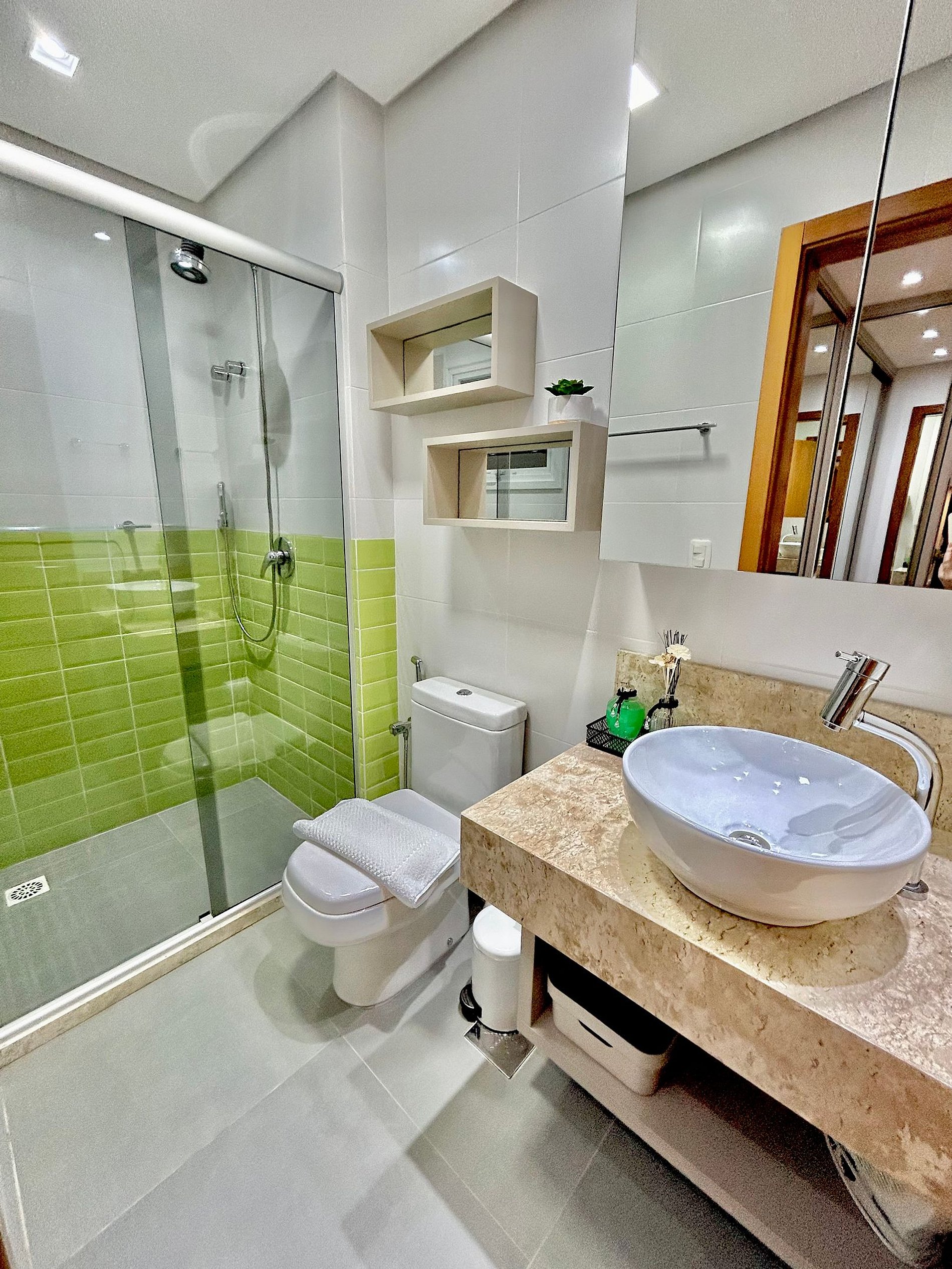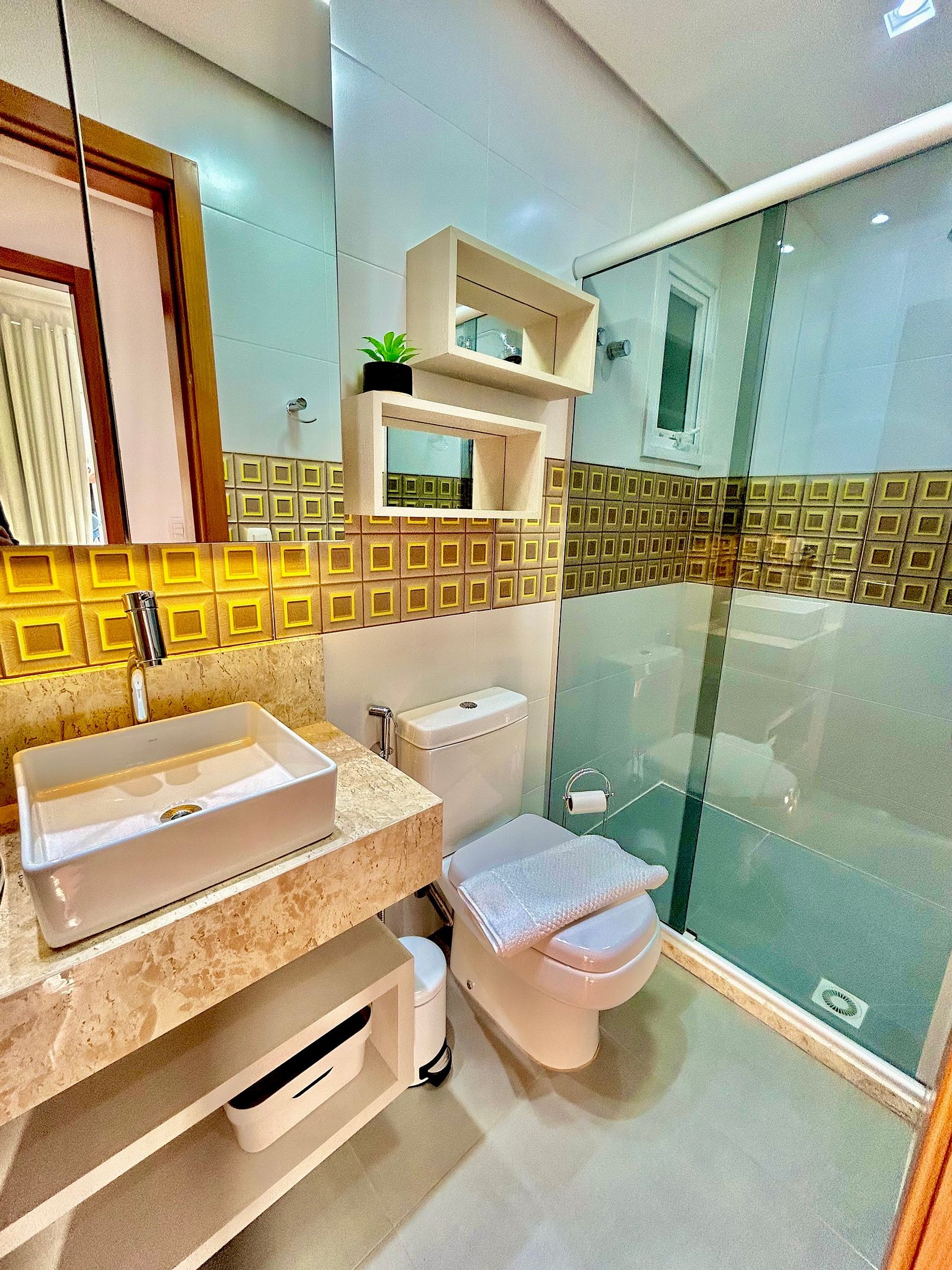 Esse apartamento é espaçoso e acomoda confortavelmente até seis pessoas. São dois quartos sendo um deles suíte com cama de casal tamanho queen. Possui ainda um sofá cama confortável que acomoda mais duas pessoas. O apartamento está totalmente equipado com itens essenciais como louças, roupas de cama e banho, máquina lava e seca, microondas, forno, cafeteira, sanduicheira, secador de cabelo e etc… Aqui, você não precisa se preocupar em carregar todos esses itens extras, pois nós pensamos em tudo! Possui ainda ar-condicionado quente e frio em todos os cômodos principais.