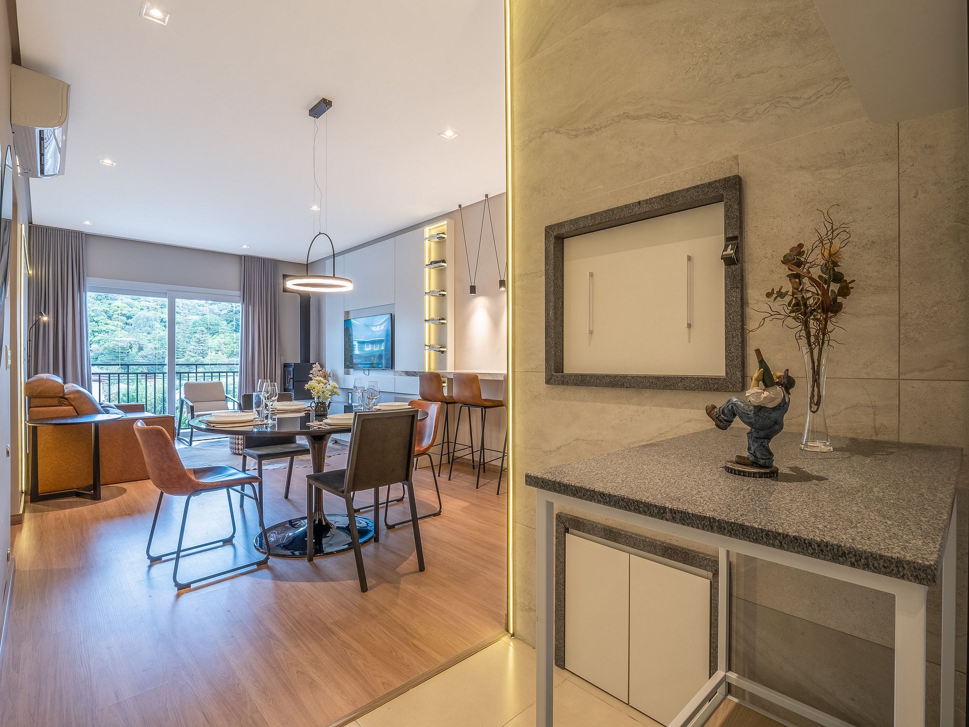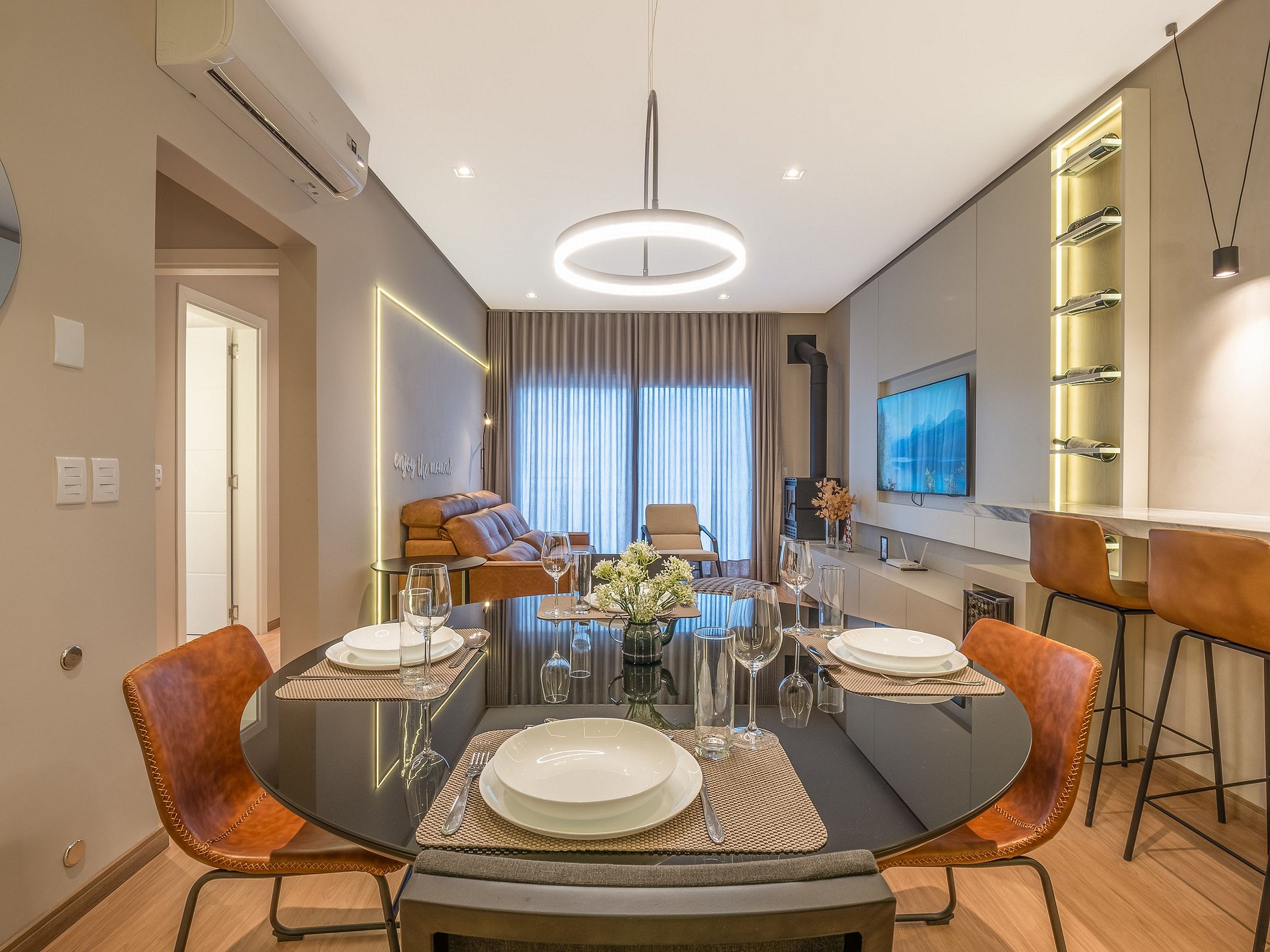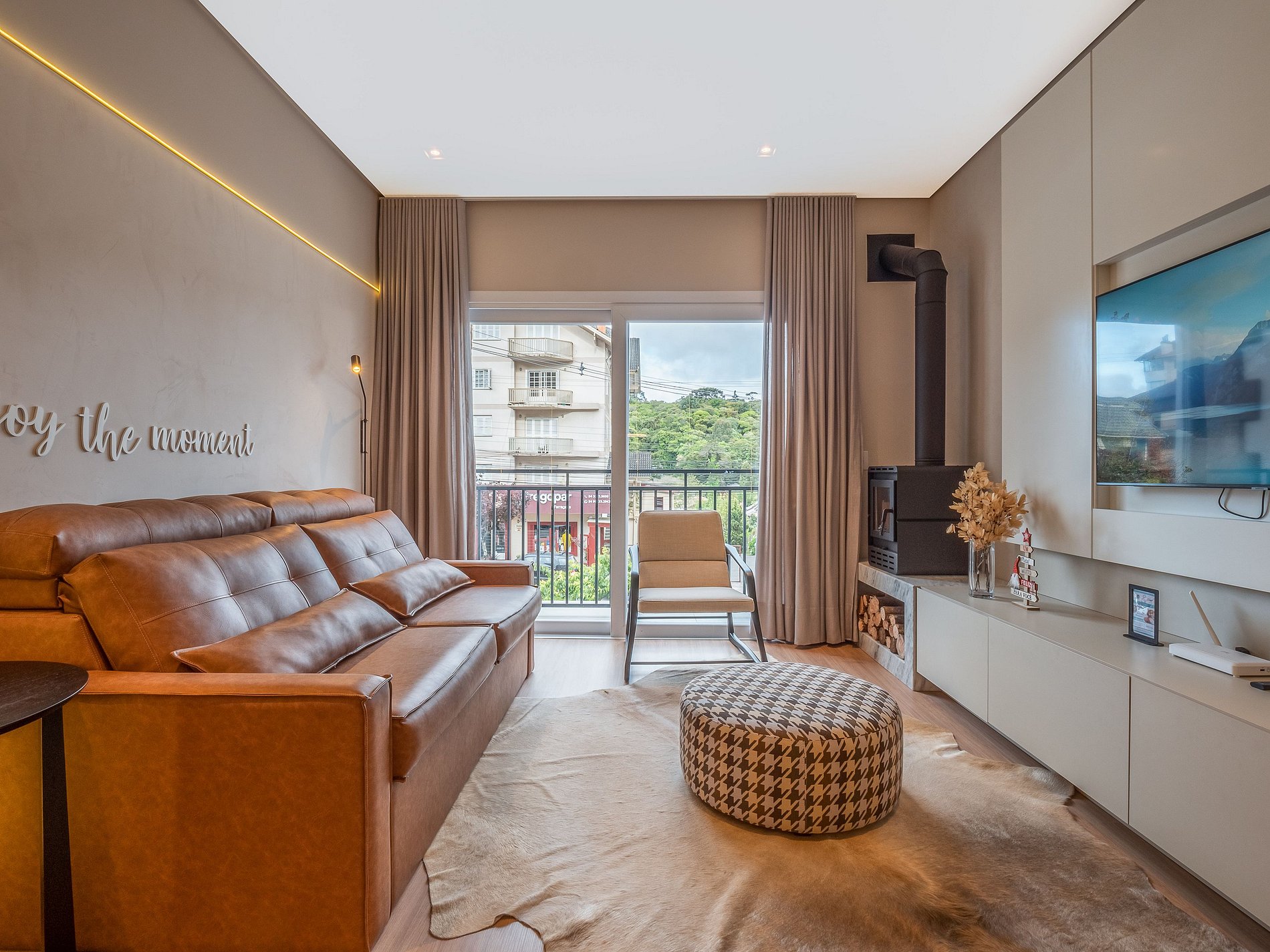 Este apartamento foi pensado para oferecer uma estadia confortável, elegante e acolhedora, com um toque especial: uma lareira charmosa que transforma qualquer momento em uma experiência ainda mais inesquecível.
