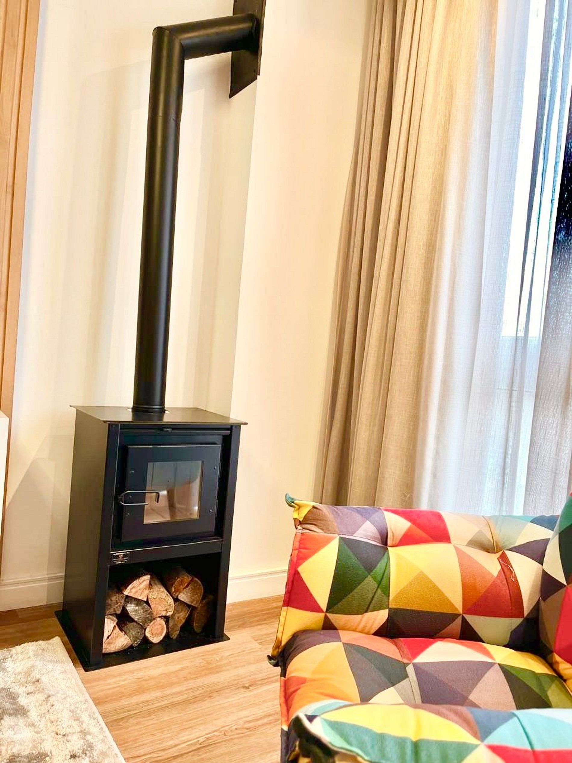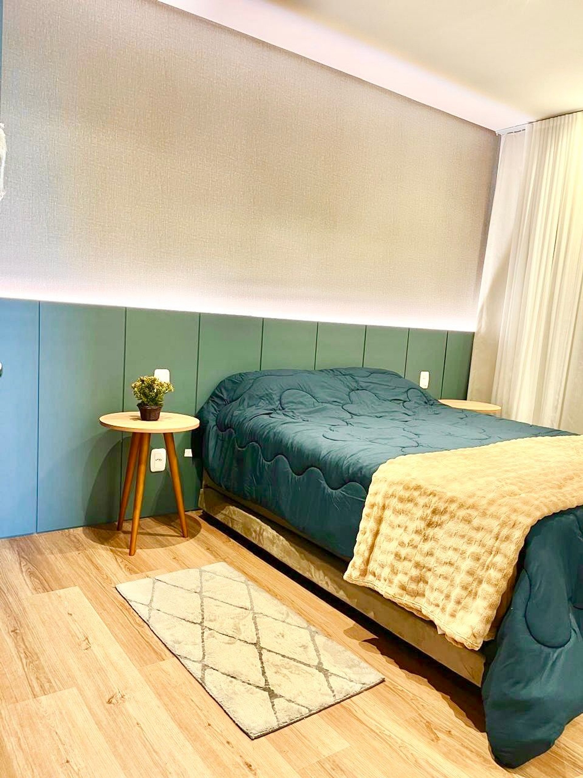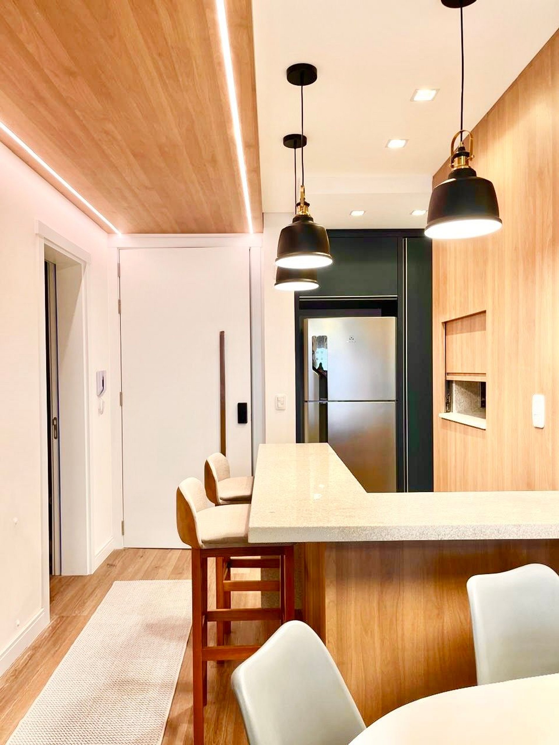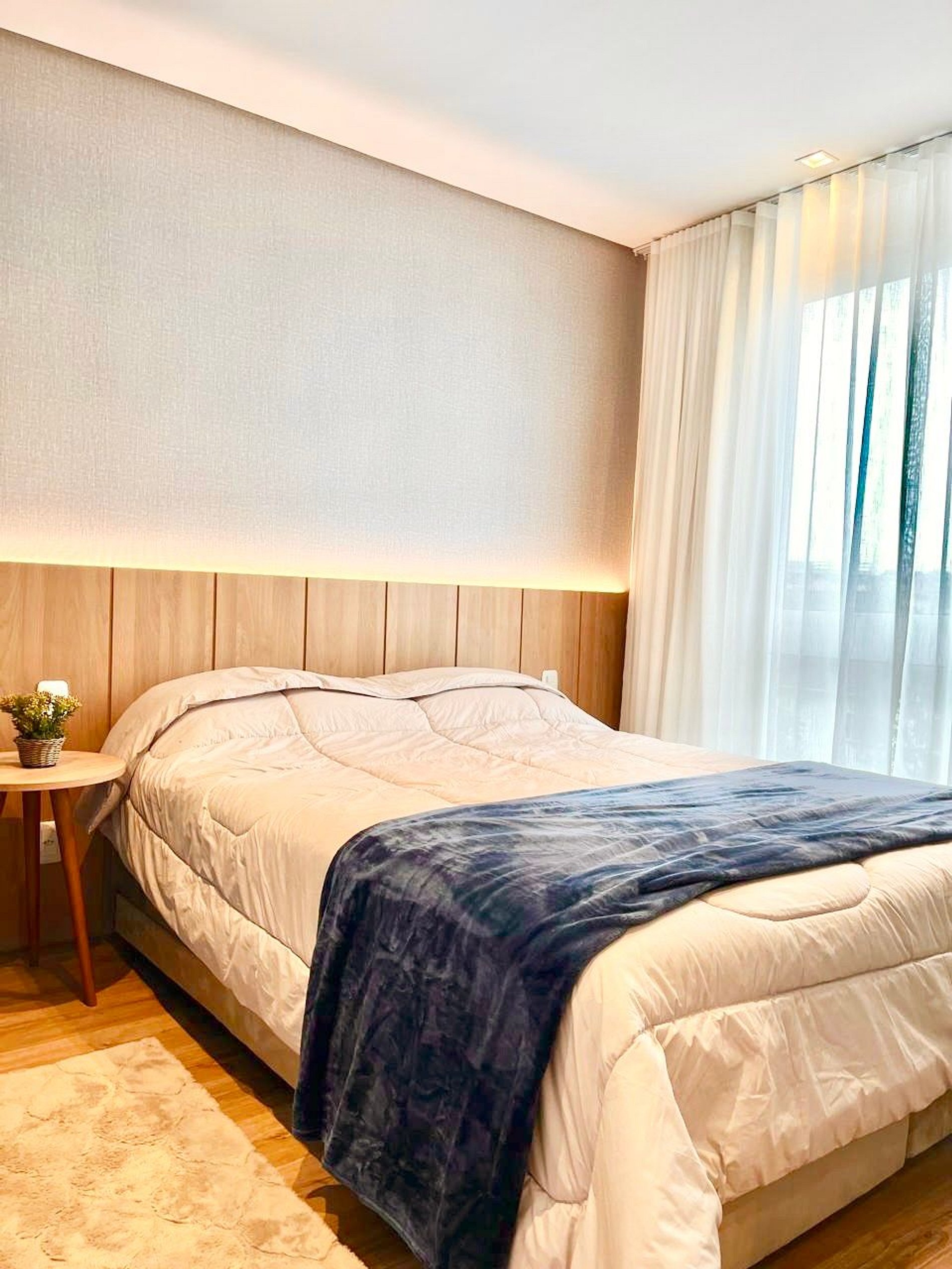 A apenas 800m da charmosa Catedral de Pedra, este apê novo para até 8 pessoas une conforto e sofisticação no coração de Canela. São 2 suítes com cama queen mais uma cama auxiliar em ambos os quartos, sofá cama de casal na sala, ar-condicionado quente/frio nas suítes e na sala de estar, lareira a lenha, lavabo, cozinha completa, máquina Lava e Seca, churrasqueira, 2 vagas de garagem e decoração impecável. Ao lado de uma padaria deliciosa e com lavanderia no prédio.